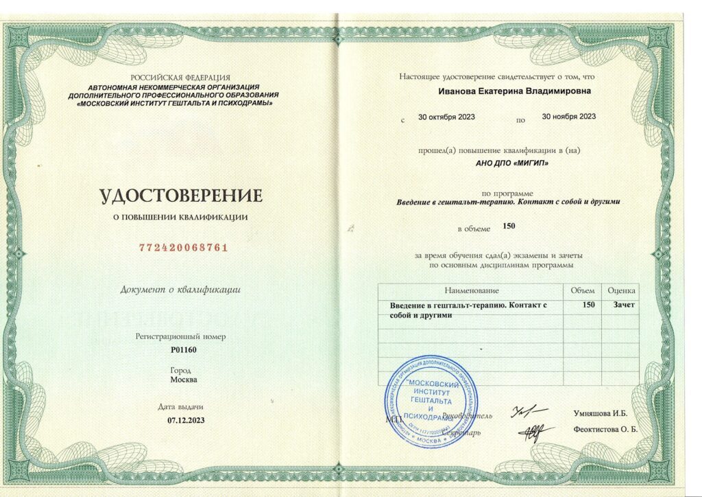 Меня это так вдохновило (и вдохновляет до сих пор), что я захотела узнать больше о терапевтическом процессе и разобраться в этом уже с другой стороны. Поэтому я пошла учиться и получила образование, чтобы уметь профессионально работать с людьми и сама стала психологом. Я и сейчас не перестаю развивать навык и продолжаю учиться — посещаю специальные мероприятия: семинары, конференции, интенсивы, лекции, участвую в вебинарах, интервизиях и супервизиях